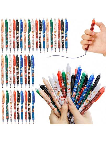 36-Piece Retractable Ballpoint Pen Set. Featuring Santa Claus And Reindeer Designs, Black Gel Ink, Perfect For Holiday Party Gifts And School Or Office Use. Christmas Pens, Christmas Theme. Student Stationery. - Multicolor - View 1