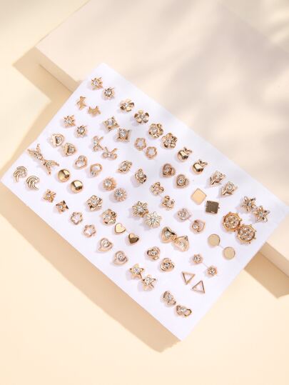 36pairs Random Rhinestone Decor Stud Earrings - Yellow Gold - View 1