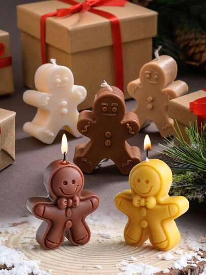 3D Cute Cartoon Gingerbread Man Silicone Molds - For DIY Candles/Soap/Plaster Resin Crafts, Festive Christmas Decor & Handmade Gifts, Durable & Flexible - White - View 11