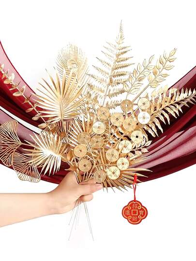 3PCS Golden Series Artificial Plants, Eucalyptus Branch Ginkgo Leaf, Suitable For Wedding Decoration, DIY Floral Arrangement, Festival Home Decor, Vase Decoration, Living Room Decor, Valentine's Day, Easter Decoration, All-Season - Multicolor - View 17