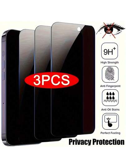3Pcs Anti-Spy Privacy Tempered Glass Compatible With IPhone 6 7 8 X Xs Xr Max 11 12 13 14 15 16 Pro Max 9H Full Screen Protector Glass Film Waterproof Shockproof Anti-Fall Anti-Fall Scratch Resistant Anti-Fingerprint - Dark Grey - View 1