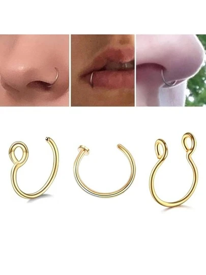 3Pcs Stainless Steel Fake Nose Ring For Women, Septal Ring C Clip Ring For Unisex, Fake Piercing Body Jewelry Non Piercing - Yellow Gold - View 1