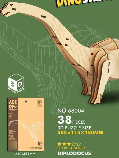 3d Wooden Dinosaur Puzzle, Diy Assembly Animal Wooden Jigsaw, Creative Hobby Educational Toy - Diplodocus - View 1
