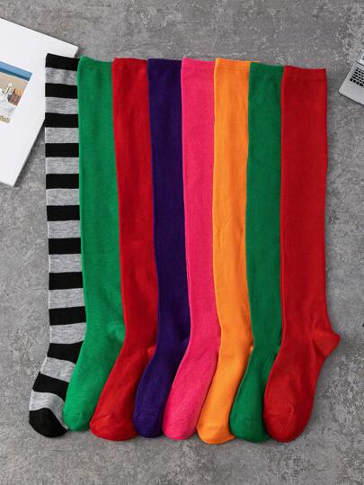 3pairs/Set Women's Random Color Lolita Striped Jk Style Over Knee Thigh High Socks - Multicolor - View 1