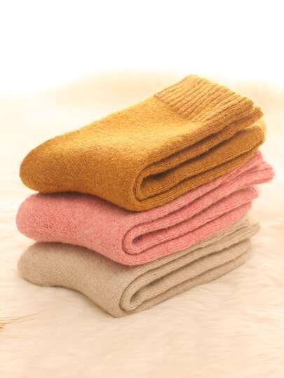3pairs Solid Crew Socks - Multicolor - View 3