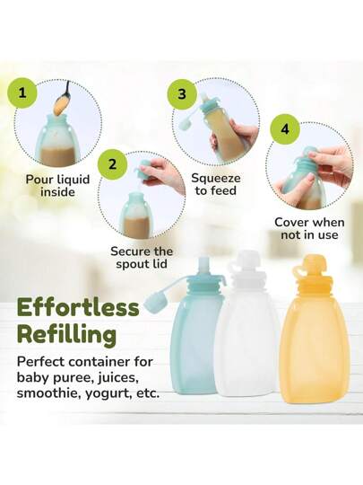 3pcs/2PCS/1set Reusable Baby Food Pouch Silicone Milk Bags Squeezy Food Storage Bag Washable Refill Toddler Food Pouch For Yogurt Apple Sauce - Multicolor - View 7