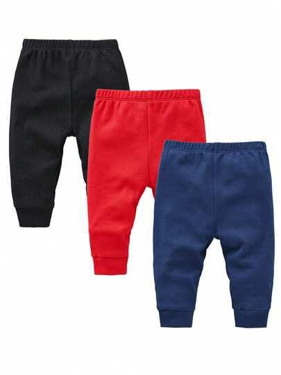 3pcs Baby Boys Soft Elasticated Waist, Cuffed Ankle Pants In Black, Blue And Red - Multicolor - View 1