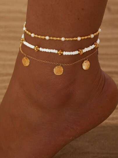 3pcs Boho Style Shell Anklet Jewelry Set For Women, Suitable For Beach Vacation And Daily Wear, Best Gift, [Random Beads Arrangement, Random Quantity] - Multicolor - View 1