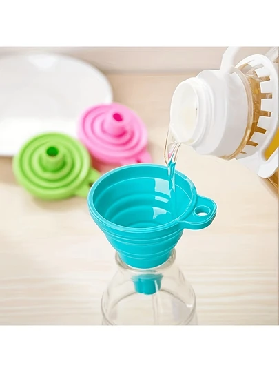 3pcs Collapsible Silicone Funnel Set, Kitchen Bottle Pouring Tool,Kitchen Essentials Funnel Set, Multi-Size For Oil, Wine, And Kitchen Organization, Splatter Proof, Easy Storage For Kitchen Organization - Blue - View 4