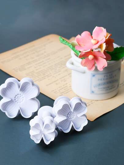 3pcs Flower Design Cookie Stamp - White - View 1
