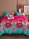 3pcs Polyester Bedding Set, Vibrant Color Floral Design, Full Size Set, Includes 1 Duvet Cover With 4 Corner Ties & Zipper + 2 Pillow Shams (No Fillings), Suitable For Travel, Camping, Home & Dorm Use