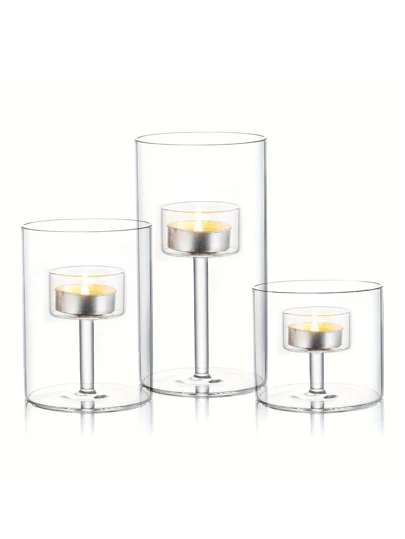 3pcs Glass Candle Holders, Home Decor, Table Centerpieces, Fireplace Candlesticks - Clear - View 1