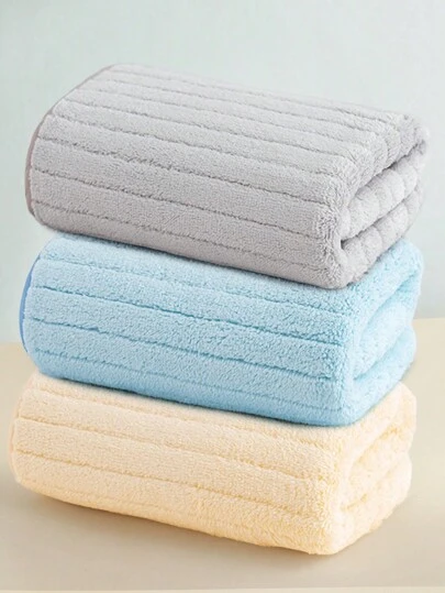 3pcs Home Coral Fleece Towel/Bath Towel, Super Soft, Highly Absorbent, Quick Drying, Non-Fading And Non-Shedding, Suitable For Face Wash, Bath, Body Drying And Hair Drying, Suitable For Bathroom, Outdoor And Gym - Blue+Yellow+Grey - View 11