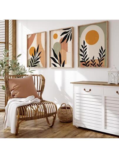 3pcs Leaf Pattern Unframed Painting,Wall Art,Canvas,Poster Gifts Birthday Graduation - Apricot - View 1