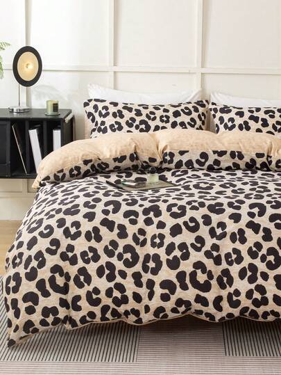 3pcs Leopard Print Bedding Set, Soft & Skin-Friendly Bed Linens Set, Includes 1 Duvet Cover & 2 Pillow Shams - Multicolor - View 1