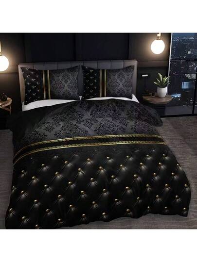 3pcs Luxury Black & Gold Jacquard Textured Pattern Bedding Set, Includes 1 Duvet Cover & 2 Pillow Shams (Comforter Not Included), Suitable For Bedroom & Guest Room, Available In Multiple Sizes, 100% Polyester Fabric, Machine Washable - Multicolor - View 1