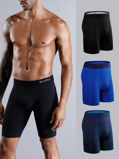 3pcs Men's Long Boxer Briefs - Black - View 1