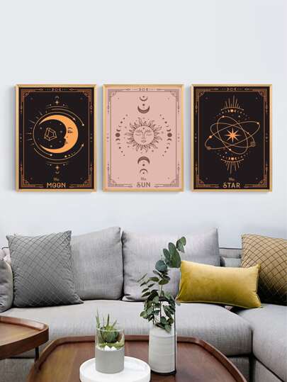 3pcs Moon & Star Pattern Unframed Painting, Wall Art Prints Hanging Decoration For Home Decor E-I-D - Multicolor - View 1