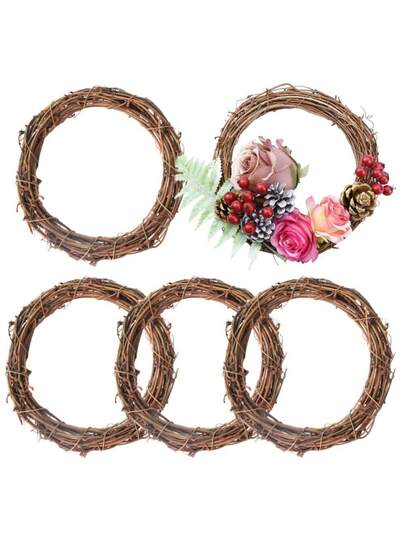 3pcs Natural Grapevine Wreath Rattan Wreath Dried Round Ring For DIY Christmas Craft, Front Door Wall Hanging, Wedding And Party Decor, Photo PropsTwig - Multicolor - View 5