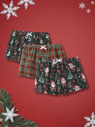 3pcs Pajama Pants Sleepwear, Candy Plaid, Christmas Snowman & Snowflake Gingerbread, Bubble Crinkle, Y2K Playful Girl, Loungewear Bottoms For Women - Multicolor - View 1