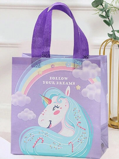 3pcs Rainbow Unicorn Gift Wrapping Non-Woven Portable Bags With Birthday Wishes - Purple - View 1