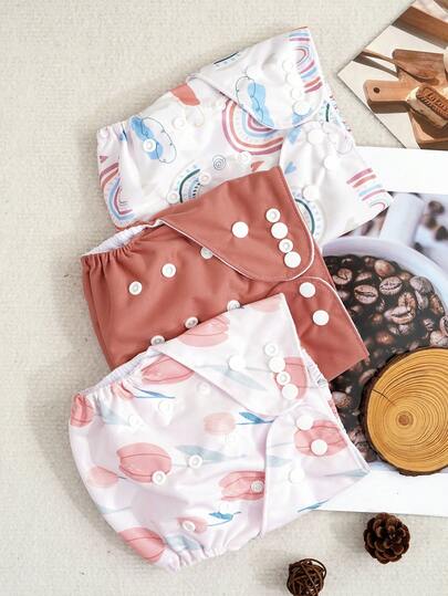 3pcs Reusable Absorbent Pocket Cloth Diapers, Flannel Lining, Baby Diaper - Multicolor - View 1