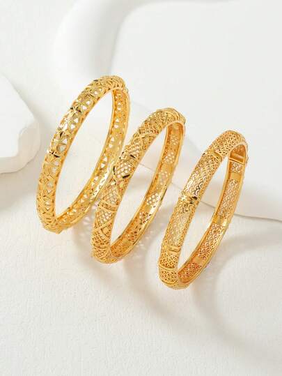 Bộ 3 vòng tay bằng đồng mạ vàng kiểu Ả Rập Xê Út, quà tặng cho gia đình và bạn bè.