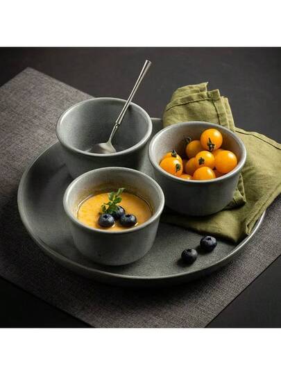 3pcs/Set 250ml Capacity, 10.5cm X 6.5cm Spotty Ceramic Oven-Safe Ramekin Bowls - Japanese Minimalist Style, Round Shape, Heat-Resistant, Suitable For Baking Souffles, Serving Desserts And Daily Dining - Multicolor - View 6