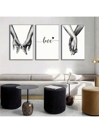 3pcs/Set Black & White Wall Art Print Inspiring Couples Holding Hands On Canvas Poster Modern Home Decor For Bedroom, Bathroom, Unframed - Black and White - View 1