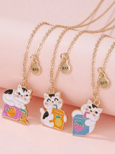 3pcs/Set Cat & Beverage Design Best Friend Sister Children's Necklaces - Multicolor - View 3