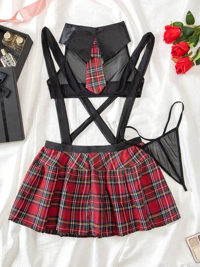 3pcs Set European & American Sexy Student Lingerie Set, Sheer Women's Seductive Uniform Role-Play Costume - Black - View 1