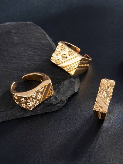 3pcs/Set Fashionable Minimalist Hammered Metal Rings, Adjustable Men's Charm Accessories, Couples Rings - 3-piece Set - View 3