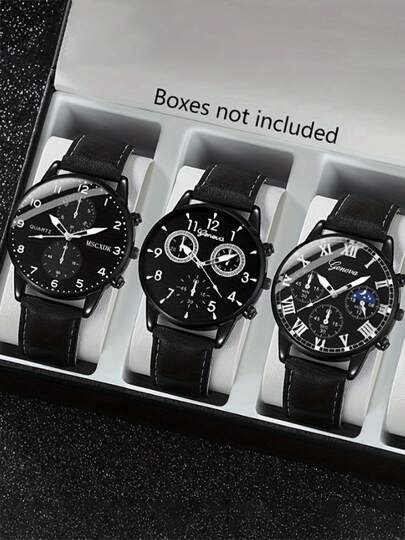 3pcs/Set Men's Exquisite Versatile Quartz Watches, Fashion & Minimalist Watch Set - Black - View 1