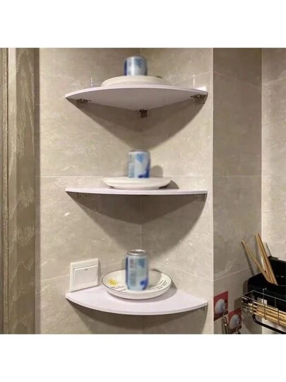 3pcs/Set Nordic Style Triangular Corner Cabinet For Living Room/Bedroom, Simple Corner Wall-Mounted Shelf - White - View 1