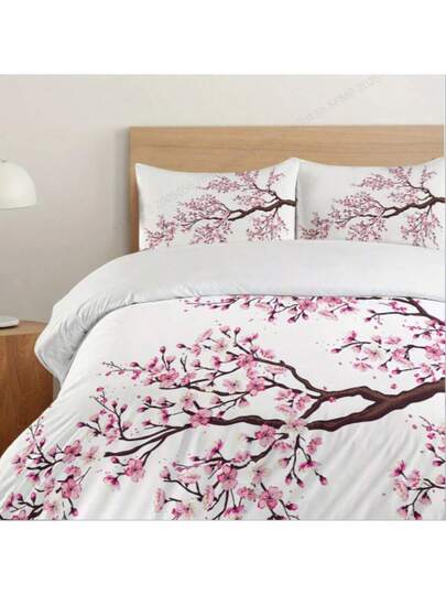 3pcs/Set Plum Blossom Printed Duvet Cover Set, Soft & Breathable 100% Fabric, Machine Washable, Suitable For All Seasons, (1 Duvet Cover + 2 Pillowcases, No Insert), Ideal For Bedroom And Guest Room Bedding Decor - Multicolor - View 8