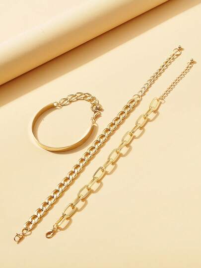 3pcs Set Punk Style Plated Gold Metal Chain Bracelets, Fashion Jewelry - Chain Bracelet Three-piece Set - View 3