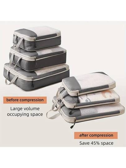 3pcs/Set Travel Compressed Packaging Cube, Travel Bag Luggage Organizer, Travel Essentials Carry-On Suitcase Compressed Cube - Multicolor - View 1