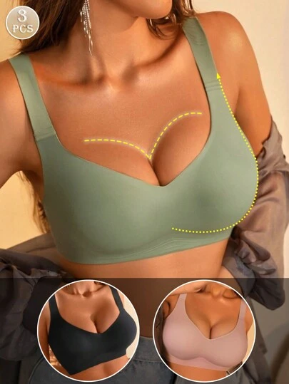 3pcs Soft Comfortable Wireless Bra - Multicolor - View 1