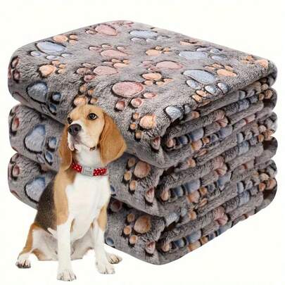 5. Bộ 3 chăn cho thú cưng bằng len cao cấp mềm mại và bông xốp, phù hợp cho chó và mèo, thảm ngủ ấm áp bằng vải flannel.