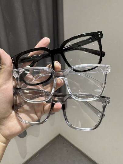 3pcs Women Plastic Multicolor Translucent Geometric Full Frame Flat Lens Casual Style Classic Personalized Casual Clear Glasses Combination For Reading,Office,Driving,Play Games,Business Casual Woman Accessories - Transparent - View 1