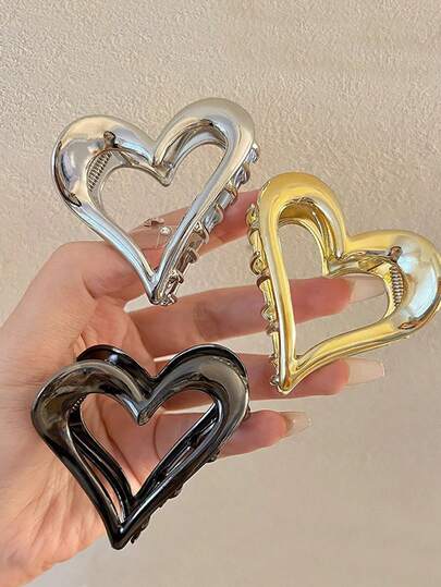 3pcs Women'S Heart Shaped Alloy Hair Claws For High Ponytail And Bun, Fashionable And Minimalist Hair Accessories For Daily Use - Multicolor - View 1