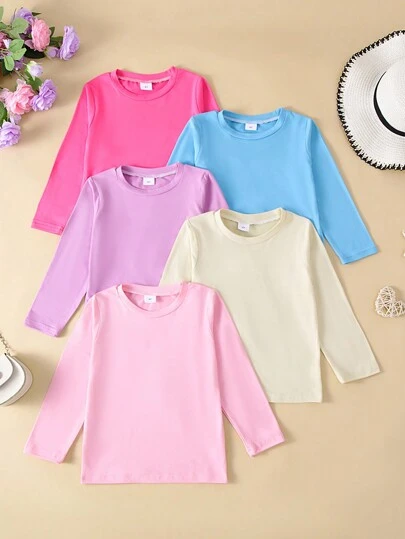 3pcs Young Girl Casual Solid Color Pattern Long Sleeve T-Shirt Set, Autumn - Multicolor - View 5