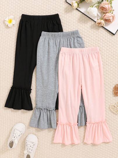 3pcs Young Girls Casual Comfortable Solid Color Minimalist Flare Hem Pants - Multicolor - View 1