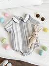SHEIN Newborn Baby Unisex Casual Cute Striped Lapel Romper, Suitable For Birthday Party, Rave, Evening Party, Performance, Wedding, Full Moon Celebration, Christening And 1st Birthday, Wedding Guest, Baby Shower