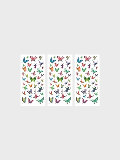 3sheets Butterfly Pattern Tattoo Sticker - Multicolor - View 1