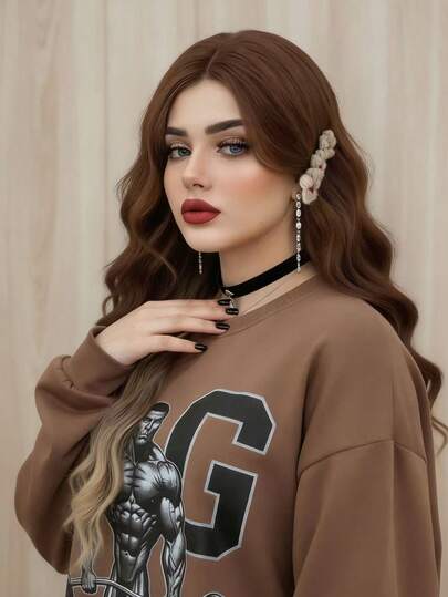 4*1 Lace 26 Inch Long Body Wave Ombre Brown Synthetic Wig For Women Brown To Blonde Middle Part Long Curly Hair Wigs For Daily Party Cosplay Use(Pay Attention To How You Wear And Care For It) - Brown - View 10
