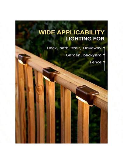 4/12PC Waterproof Solar Deck Light, Used For Outdoor Stairs, Fences, Gardens, Balconies, Yards, Terraces, And Channel Decoration - Warm White LED Light - Brown - View 1