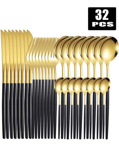 4/16/24/32pcs Portuguese Stainless Steel Cutlery Set, Steak Knife Fork Spoon, Suitable For Home, Restaurant, Party, Banquet, Holiday Gifts Christmas Gift - Multicolor - View 1
