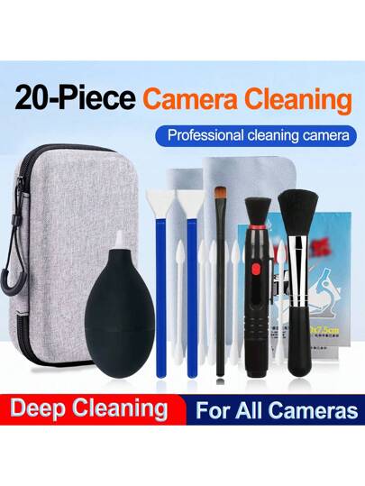 4/20 Pieces Camera Cleaning Kit, Professional Lens Cleaner For DSLR, Mirrorless Cameras, Smartphones - Includes Air Blower, Sensor Cleaning Cotton Swab, Cleaning Cloth, Cleaning Paper, Lens Cleaning Pen, Brush, Cleaning Cotton Swab, Etc., - Suitable For All Cameras And Lenses - 20-piece (Deep Cleaning) - View 4