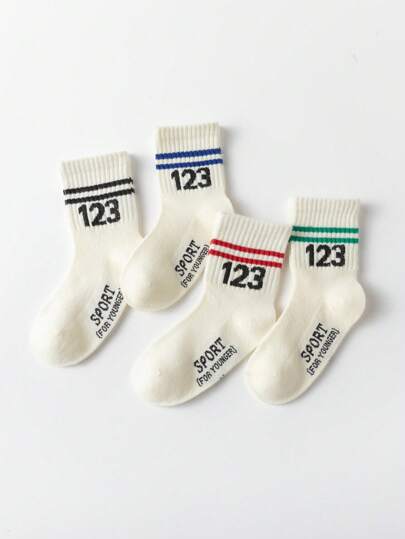 4 Pairs Breathable Mesh Stripe & Letter Pattern Mid-Calf Socks, Comfortable & Versatile, Student Socks - Multicolor - View 1